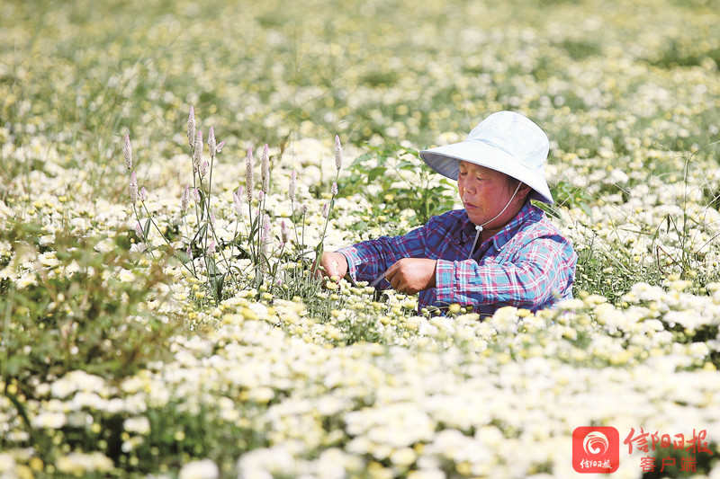 “我们基地主要种植北京菊、杭白菊、金丝皇菊、婺源贡菊等,采摘后经过加工处理,销往郑州、武汉等全国各地。此外,我们还种植并加工有玫瑰花茶。”基地负责人时志中告诉记者,明年公司将向村民推广菊花种植技术,保底收购,让村民得到更多实实在在的好处。