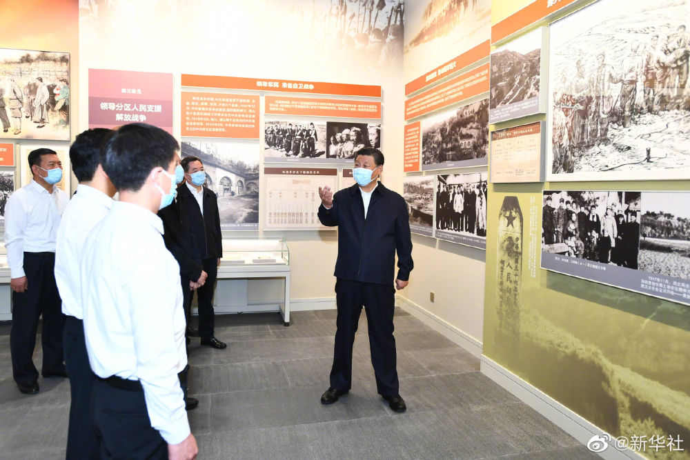 【习近平在绥德考察调研】习近平总书记14日在榆林市绥德县考察调研。他先后来到中共绥德地委旧址、绥德实验中学、绥德县非物质文化遗产陈列馆、张家砭镇郝家桥村,围绕弘扬党的光荣传统和优良作风、促进学生全面发展与健康成长、推进传统文化保护与传承、全面推进乡村振兴等实地调研。(文字记者:张晓松、朱基钗;摄影记者:李学仁、谢环驰、燕雁)