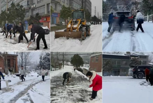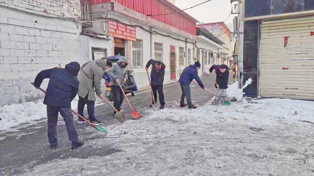 寒潮中的“红色暖流” 浉河区医疗保障局党员志愿者助力滨河轩社区除冰保畅