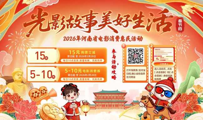 15元立减券每日开抢!河南2026年春节观影补贴上线17 小时前 -